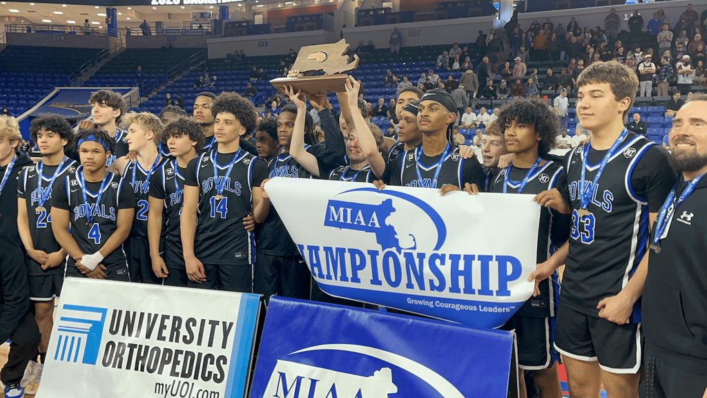 6th ranked Georgetown Boys Basketball won their first Division IV State Championship in school history, beating 5th ranked Monument Mountain 61-54 at the Tsongas Arena in Lowell. Irvin Zapata had 22 points and Brendan Loewen 19– 9 in the final 8 minutes. Congratulations to Coach Keilty and all the coaches and the entire team for this historic victory!