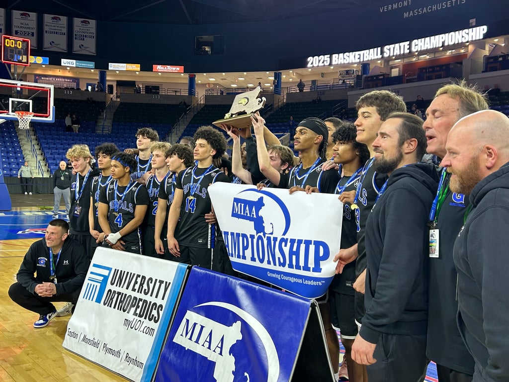 Yes! The Georgetown High School Boys Basketball Team are MIAA STATE CHAMPIONS! Coach Keilty and his coaching staff led the team through an extraordinarily successful season, championship tournament and ultimately to clinch the final game on Saturday, March 15, 2025, at the Tsongas Arena. They did not do this alone. The cheerleaders came out in force! Coach Tracy Wood led the squad with loud and frenetic energy! The outpouring of support from our students, families, and community members was unbelievably robust. The stands were spilling over with a wave of blue. This is what Georgetown is all about. I am so happy to be part of the community. Thank you all!